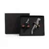 Abridor conta com agulha espiral saca-rolhas, uma lâmina canivete de 1” com serra para cortar lacres e abridor de garrafas com duas bases de apoio.