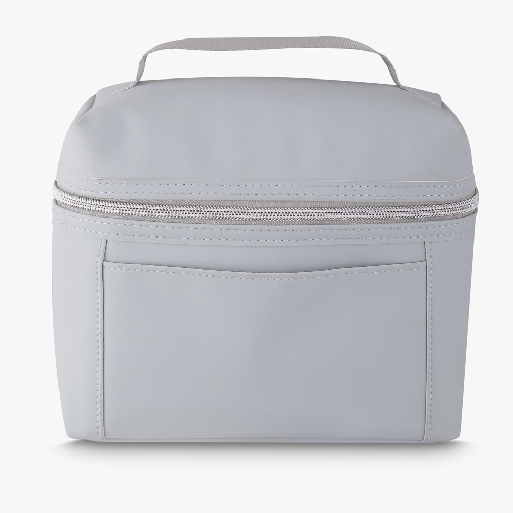 Bolsa térmica em PU com zíper, parte interna costurada, com alça de mão e bolso frontal. 35% OFF NA PLAQUINHA! Entre em contato com seu consultor para adicionar no pedido a plaquinha. *Desconto válido somente na compra dos itens: Mochilas, Necessaires e Bolsas Térmicas. Ver plaquinhas