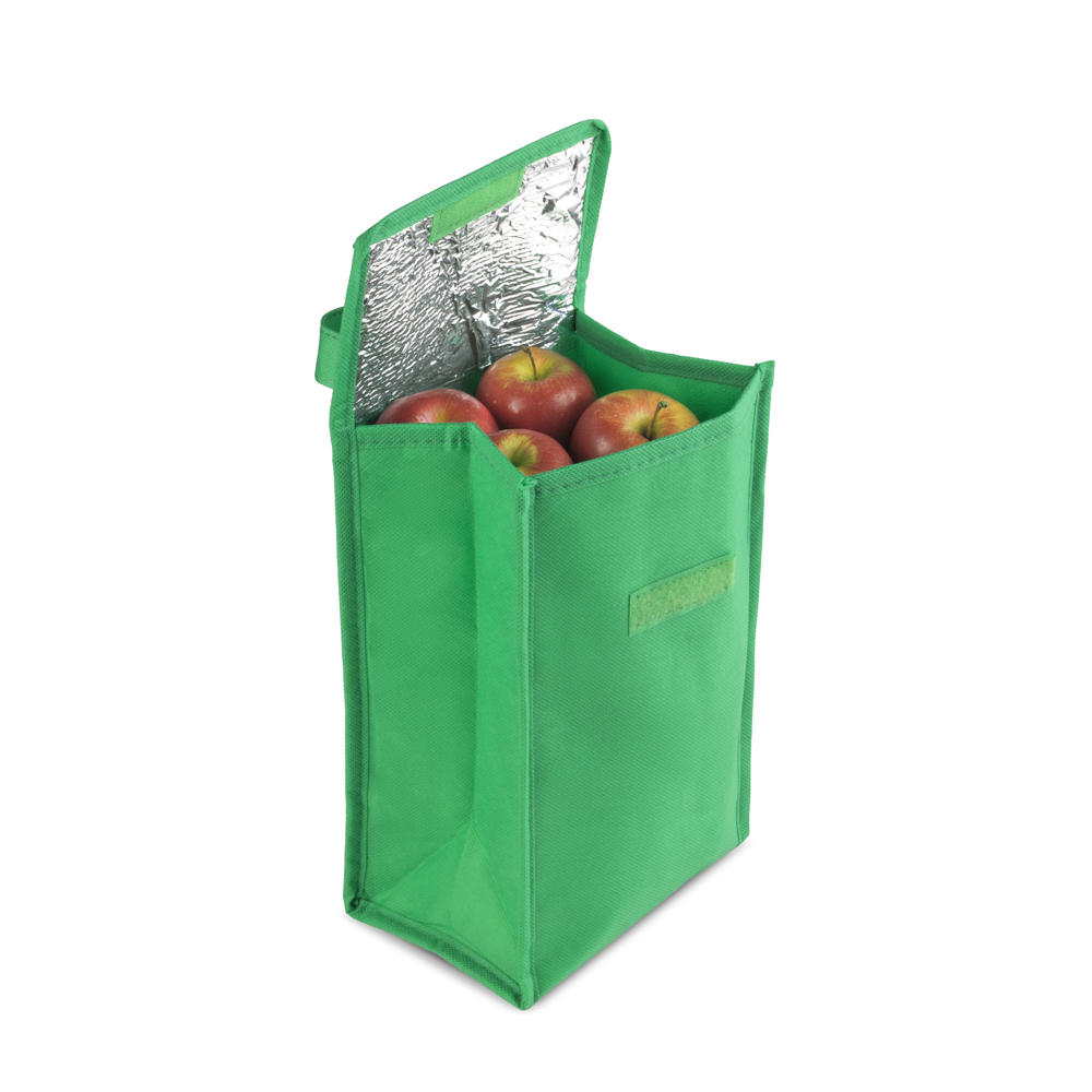 Bolsa térmica em TNT com 80g/m², interior costurado revestido em algodão e folha de alumínio de 2mm. 35% OFF NA PLAQUINHA! Entre em contato com seu consultor para adicionar no pedido a plaquinha. *Desconto válido somente na compra dos itens: Mochilas, Necessaires e Bolsas Térmicas. Ver plaquinhas