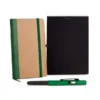 Caderno para anotações azul com capa dura e caneta esferográfica em alumínio azul.