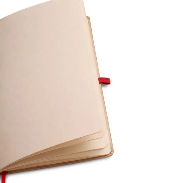Caderno para anotações com capa dura nas cores Vermelho/Bege.
