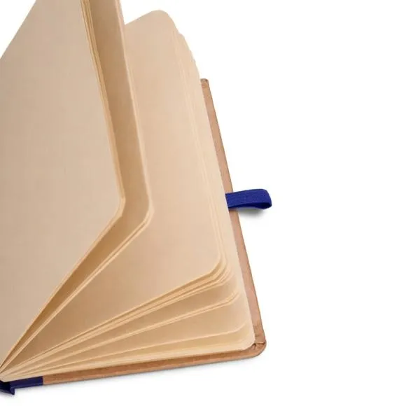 Caderno para anotações com capa dura nas cores Azul/Bege.