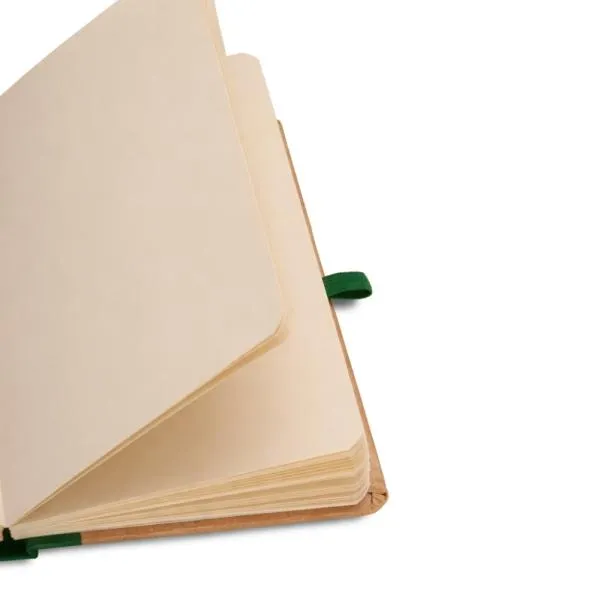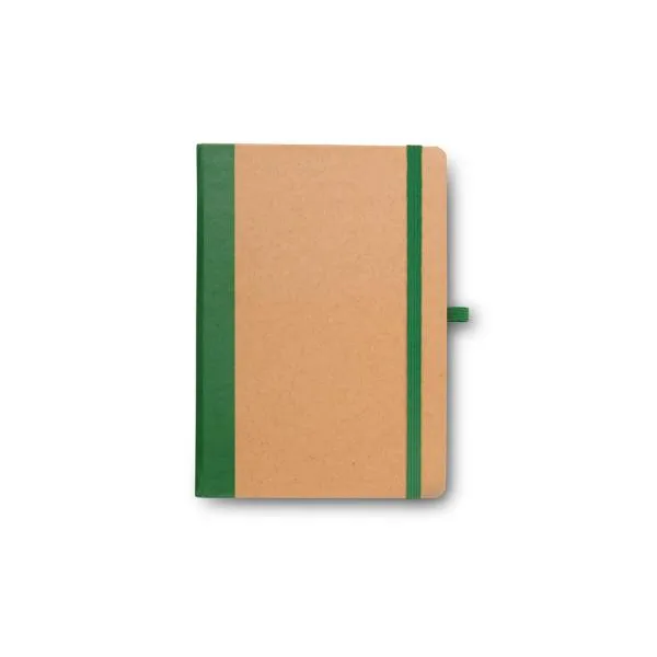 Caderno para anotações com capa dura nas cores Verde/Bege.
