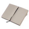 Caderno de anotações, Capa com fibra de cana de açucar, e detalhe em fibra de cafe e PU, suporte para caneta, miolo com 80 folhas pautadas na cor bege.