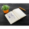 Caderno A5 de capa dura em PVC com 160 páginas pontilhadas em cor marfim, elástico, fita separadora, bolso interior e suporte para esferográfica (não inclusa). 137 x 210 mm
