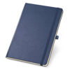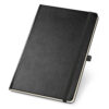Caderno A6 de capa dura com 160 páginas lisas em cor marfim, com suporte para esferográfica (não inclusa) e bolso interior. 97 x 145 mm
