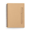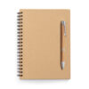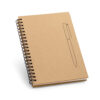 Caderno B6 espiral com capa dura em papel kraft. Contém 140 páginas lisas em papel pedra (120 g/m²) e imã na capa que funciona como um suporte de esferográfica (não inclusa). 130 x 180 mm