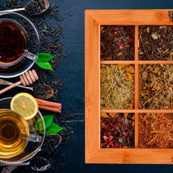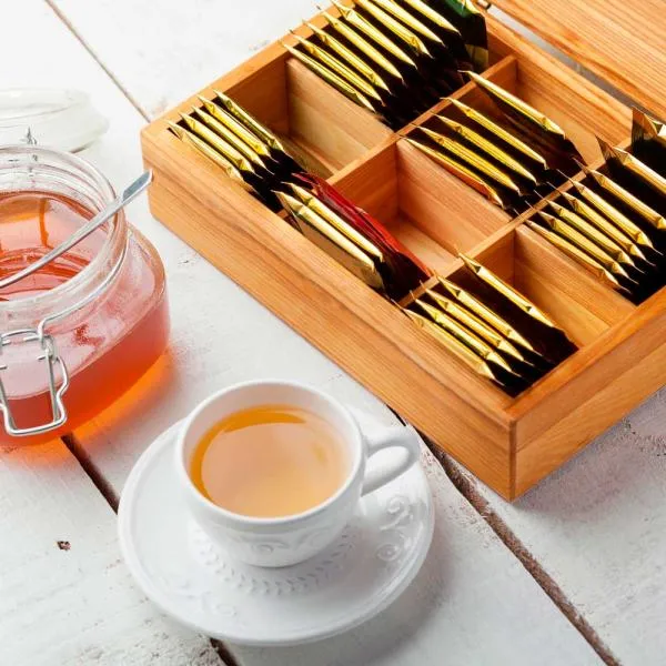 Caixa para chás em bambu/Poliestireno.