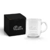 Caneca em vidro. Acompanha também a embalagem.