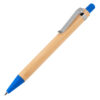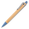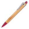 Caneta corpo de bambu com detalhes em plástico e metal.