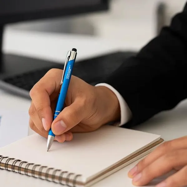 CANETA ESFEROGRÁFICA EM ALUMÍNIO COM PONTA TOUCH – AZUL CLARO