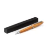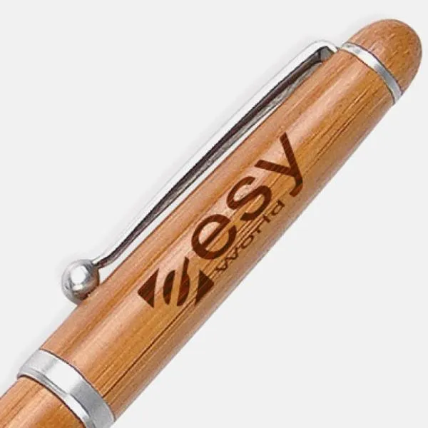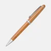 Confeccionada em Bambu ecológico com detalhes em cromado fosco, possui carga esferográfica azul. É acionada com um giro no corpo da caneta.
