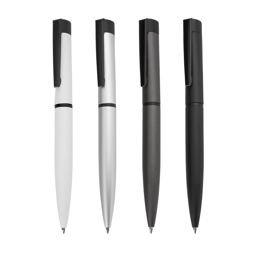 Caneta esferográfica de metal escrita em azul