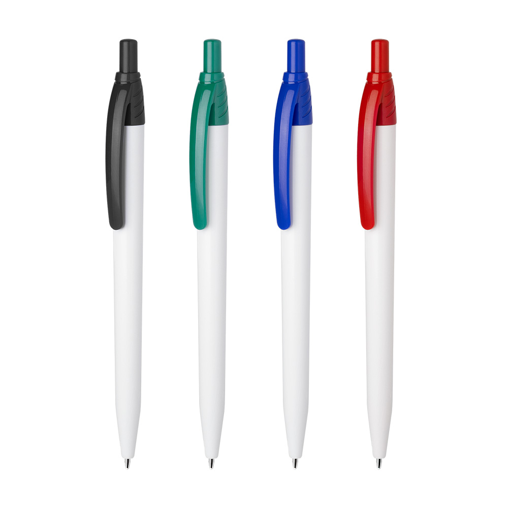 Caneta plástica esferográfica retrátil escrita em azul