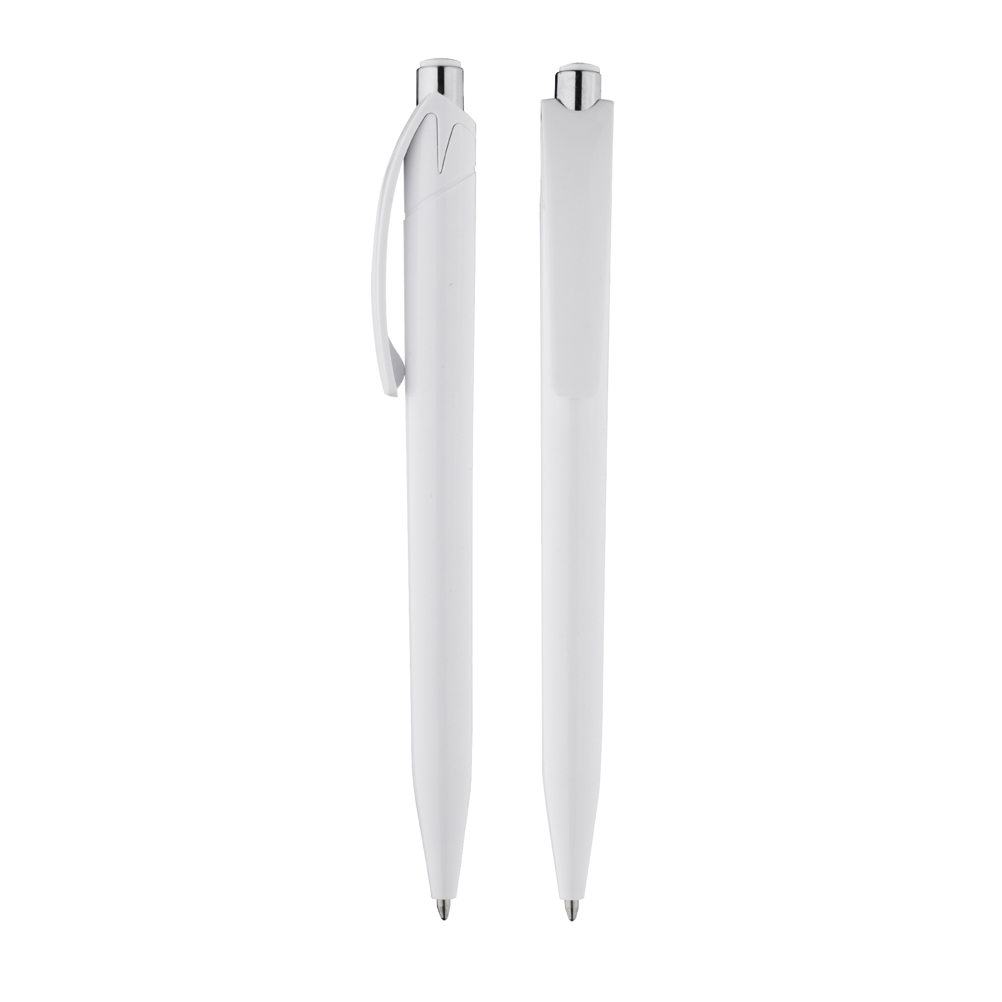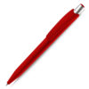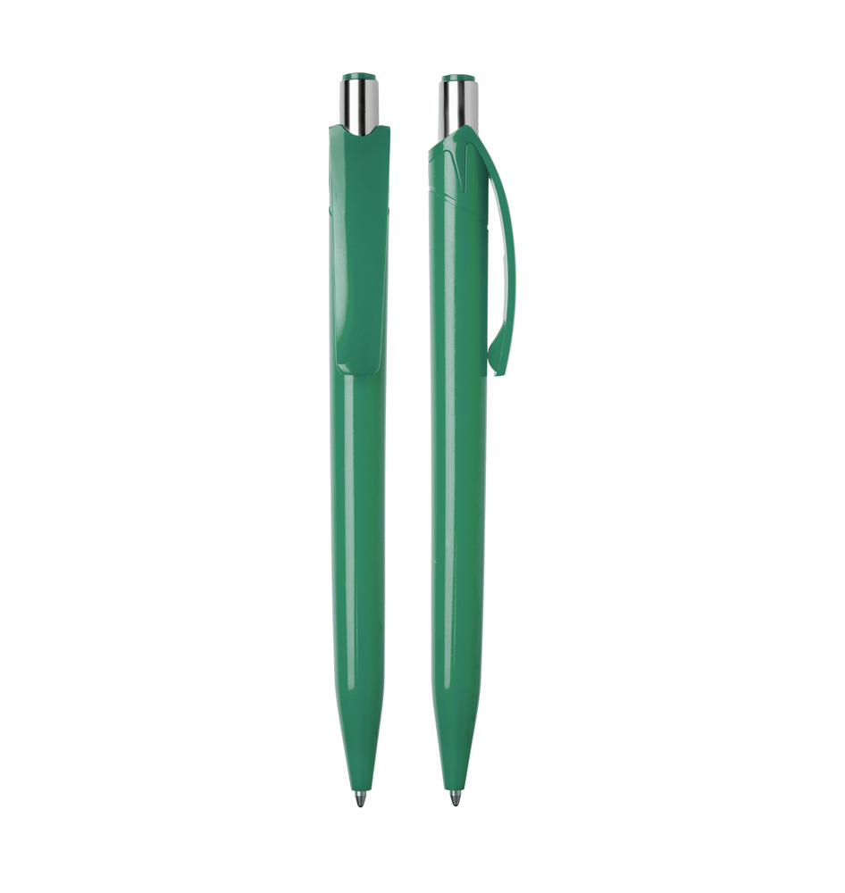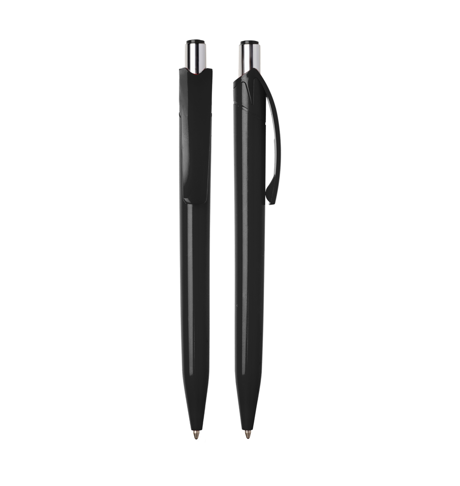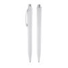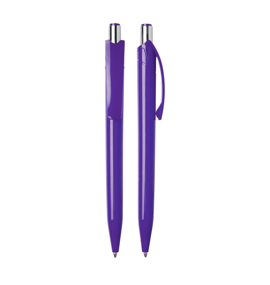 Caneta plástica esferográfica retrátil escrita em azul.