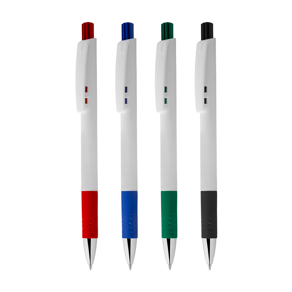 Caneta plástica com grip esferográfica retrátil escrita em azul