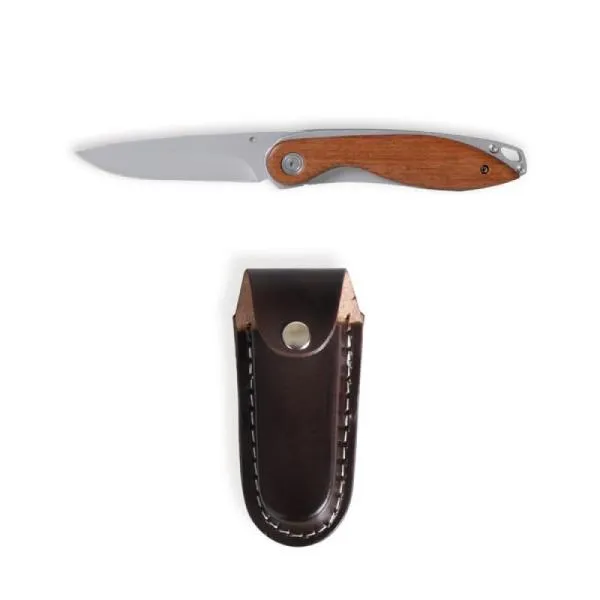 Canivete em aço inox com cabo em madeira.