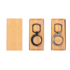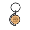 Chaveiro de metal com detalhe em bambu. Acompanha estojo em papelão imitando bambu.