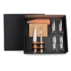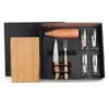 Gravação: Uma gravação a Laser nos copos, garrafa, tábua e lâmina da faca; uma gravação em Silk/Digital na tampa da caixa.
