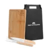 Kit para churrasco; Conta com tábua em Bambu; Faca 7″ e garfo em aço Inox/Madeira.