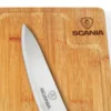 Conjunto para Churrasco. Composto por uma tábua retangular em tripla camada invertida de Bambu com sulco e uma faca 8” com cabo em Madeira e lâmina em aço Inox com rebites resistentes.
