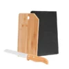 Conjunto para cozinha em Bambu/Inox. Acompanha tábua em bambu com furo e faca para pão em Bambu/Inox.