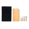 Conjunto com tábua em bambu; Duas facas, uma espátula e um garfo para Queijos em madeira/inox.