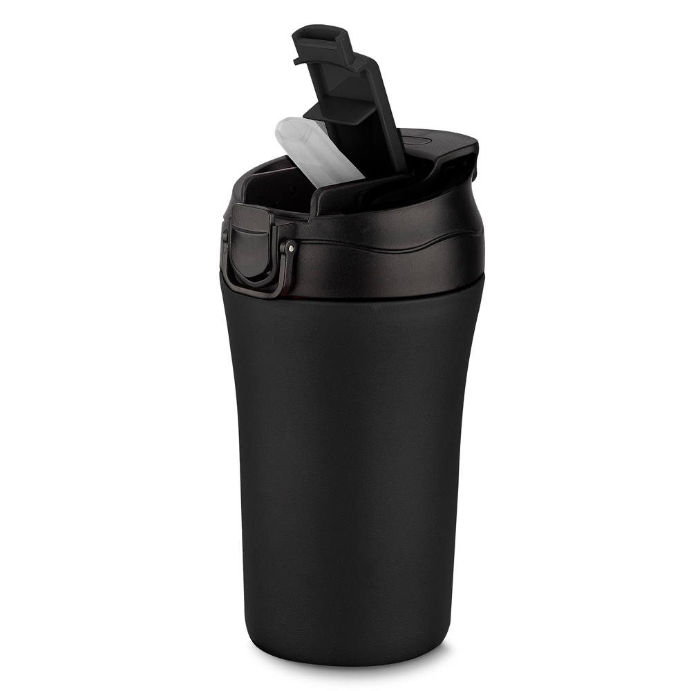 Copo térmico com parede dupla de 500 ml, saída de líquido tanto por sucção (canudo) como por bico, com base revestida de borracha antiderrapante Conserva líquidos : ☀️ 2 horas ❄️ 4 horas