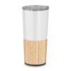 Copo térmico parede dupla em aço inox, detalhe em bambu na parte inferior, tampa plástica com anel de silicone para evitar vazamento, com capacidade de 550ml. Conserva líquidos : ☀️ 4 horas ❄️ 6 horas