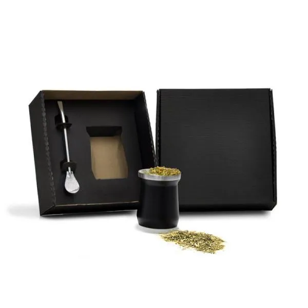 Gravação: Uma gravação a Laser na cuia; uma gravação em Silk/Digital na tampa da caixa.