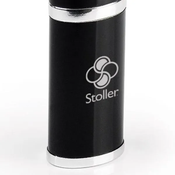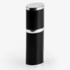 Estojo em alumínio preto com detalhes em cromado brilhante e tampa. Possui interior com espuma para proteção que acomoda perfeitamente duas canetas.