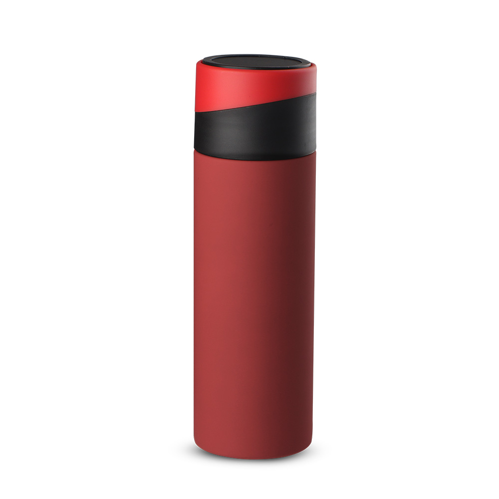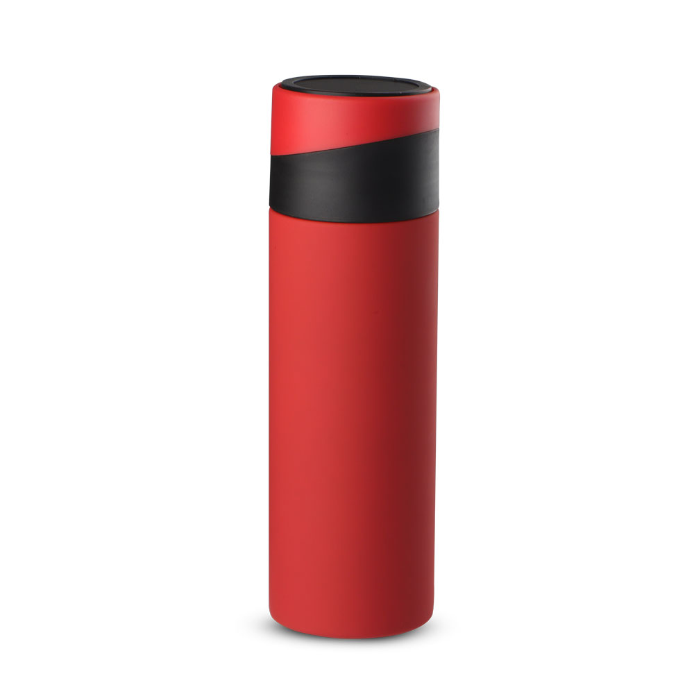 Garrafa térmica em aço inox com parede dupla isolada a vácuo, com capacidade de até 400 ml. Tampa rosqueável com anel de silicone para vedação. Com apoio de silicone para o celular na tampa. Conserva líquidos : ☀️8 horas ❄️12 horas