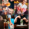 Conta com acessórios úteis para bar em aço inox, sendo um abridor saca rolhas; coqueteleira em aço inox com 350 ml; uma colher de mistura; dois dosares; coador; dois bicos dosadores; pegador para gelo; socador e base em bambu.