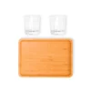 Composto por bandeja para servir em Bambu e dois copos para Drink em vidro.