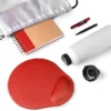 Composto por mochila sacola branca em Nylon 190D com alças ajustáveis; garrafa em alumínio branco com tampa plástica rosqueável preta com alça; mouse pad vemelho ergonômico com apoio de espuma para o punho; caderno para anotações wire-o com capa dura bege/vermelho e caneta esferográfica em ABS vermelho.