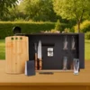Gravação: Uma gravação a Laser nos copos, na tábua e lâmina da faca; Silk na tampa da caixa.