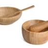 Conta com cumbuca redonda em bambu com capacidade de 200 ml e espátula, conta também com amassador de temperos. Estão perfeitamente acomodados em uma caixa para presentear.