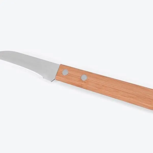 Conjunto de Facas. Acompanha faca 7” em Bambu/Inox e faca 3″ em Madeira/Inox. Conta também com garfo trinchante em Madeira/Inox.