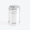 Kit contendo dois potes de aço inox para tempero com tampa giratória acomodados em uma embalagem para presente.