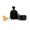 Composto por marmita dupla em Fibra de Trigo com tampa em Bambu; bolsa Térmica preta em Polyester 600D/PEVA – não impermeável e garrafa preta em PET com tampa rosqueável.