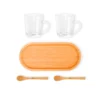 Kit para café. Composto por duas canecas americano em vidro; bandeja e duas colheres de 13 cm em Bambu.