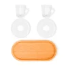 Composto por bandeja em Bambu e duas xícaras express americano com pires em vidro.