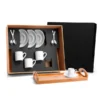 Gravação: Uma gravação a Laser na bandeja, na tampa da caixa e em Silk Screen nas xícaras.