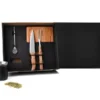 Gravação: Uma gravação a Laser na tábua, na faca e na cuia; silk na tampa da caixa.