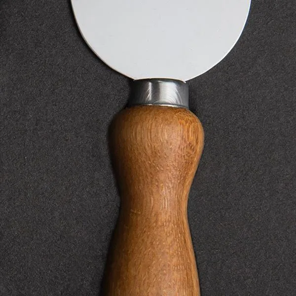 Conta com petisqueira em bambu; duas facas, sendo uma com ponta e outra reta, garfo e espátula em madeira/inox.