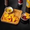 Conjunto para petiscos e patês em Bambu/Fibra de bambu. Acompanha dois potes em fibra de bambu e base em bambu.