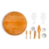 Kit para Pizza/Cerveja. Conta com tábua, espátula para Pizza e duas espátulas de 14 cm em Bambu; cortador de Pizza em Madeira/inox; duas taças para Cerveja em vidro e 2 ramekins em porcelana.