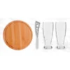 Kit para queijo e cerveja; Conta com tábua para queijo/petiscos; Faca para frios em metal; Dois copos para cerveja em vidro. Estão perfeitamente acomodados em uma caixa para presentear.