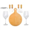 Conta com tábua para queijo/petiscos; Duas facas, sendo, uma com ponta e outra reta, garfo e espátula em madeira/inox; Duas taças para vinho em vidro e abridor em metal.
