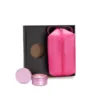 Kit vela aromatizada e necessaire. Composto por necessaire com alça em material sintético na cor rosa e vela aromatizada de lavanda.
